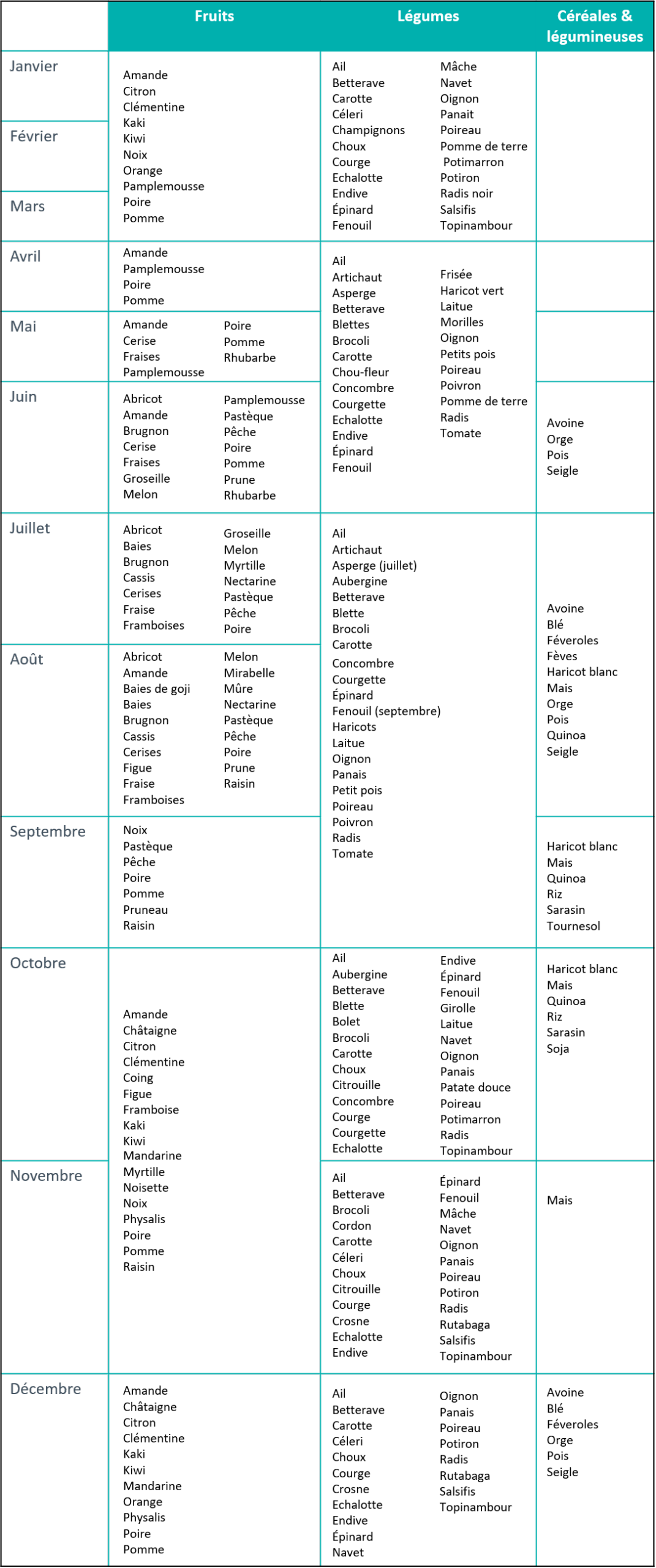 Fruits et légumes de saison : lesquels choisir ? Découvrez le calendrier des fruits et légumes de saison :